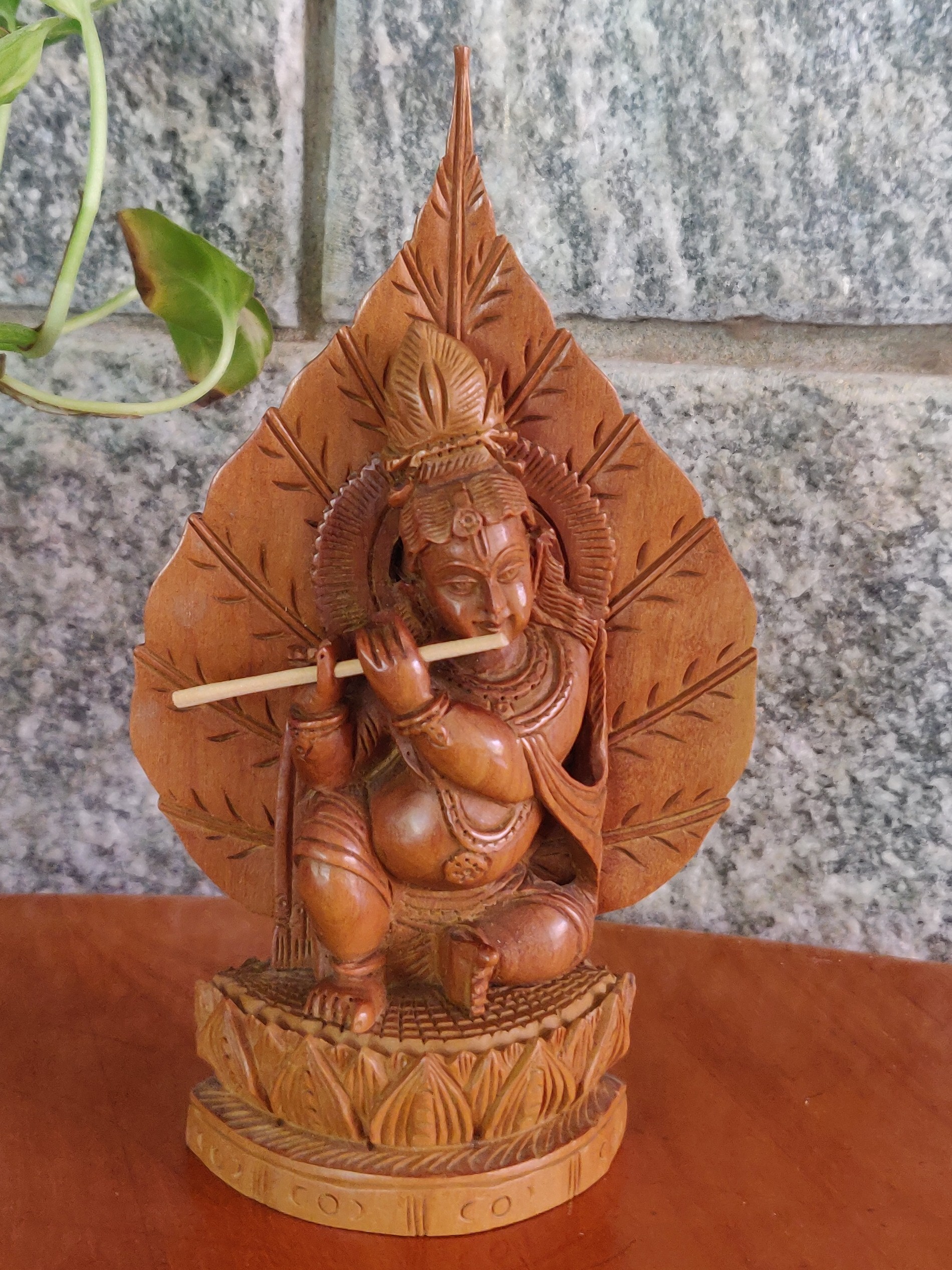 Hindu god Sree Krishna Murti with flute on petal leaf is the best showpiece you can gift to your near and dear ones