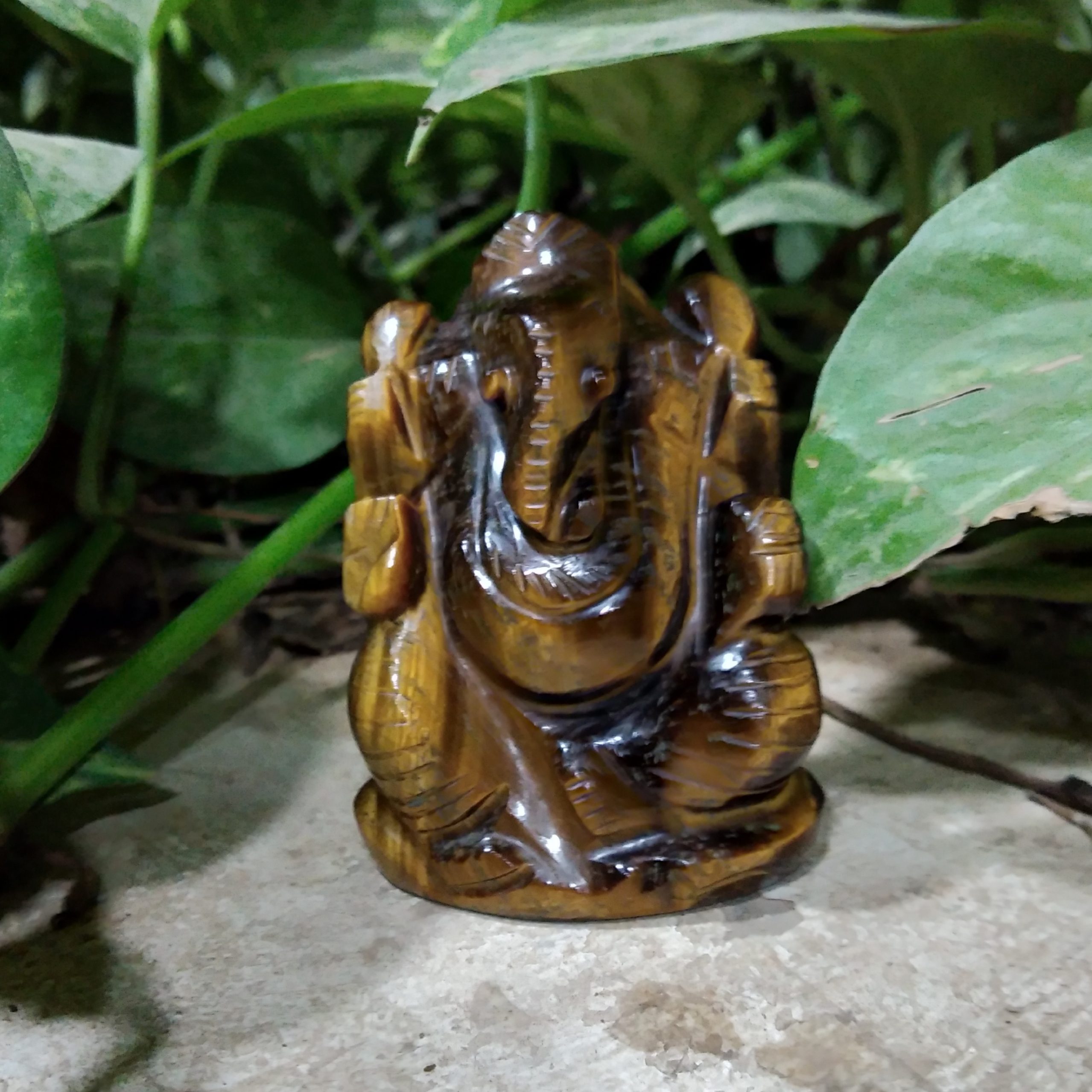 The Lord ganesha statue in silky luster displayed from breeze handicrafts in amazon is artistically carved from natural tiger eye stone a semi precious gemstone. Tiger’s eye stone is one of the highly revered gemstone since ancient times. Tiger eye stone is a powerful stone that helps you to release fear and anxiety and aids harmony and balance. The meaning of this stones name relates to its resemblance to the eye of a tiger or cats eye. The gemstone color is yellow brown to golden brown and it is very attractive with lovely bands of color through it. The fire or solar element in this golden stone stimulates your ability to manifest your most ardent desires. This golden brown stone is quartz based with various minerals included. The mesmerizing yellowish brown color of ganapahi idol reminds of us Kapila ganesh murti who is also brownish yellow colored. Get divine blessings by placing this ganapathi deity in temple room/ puja room.
